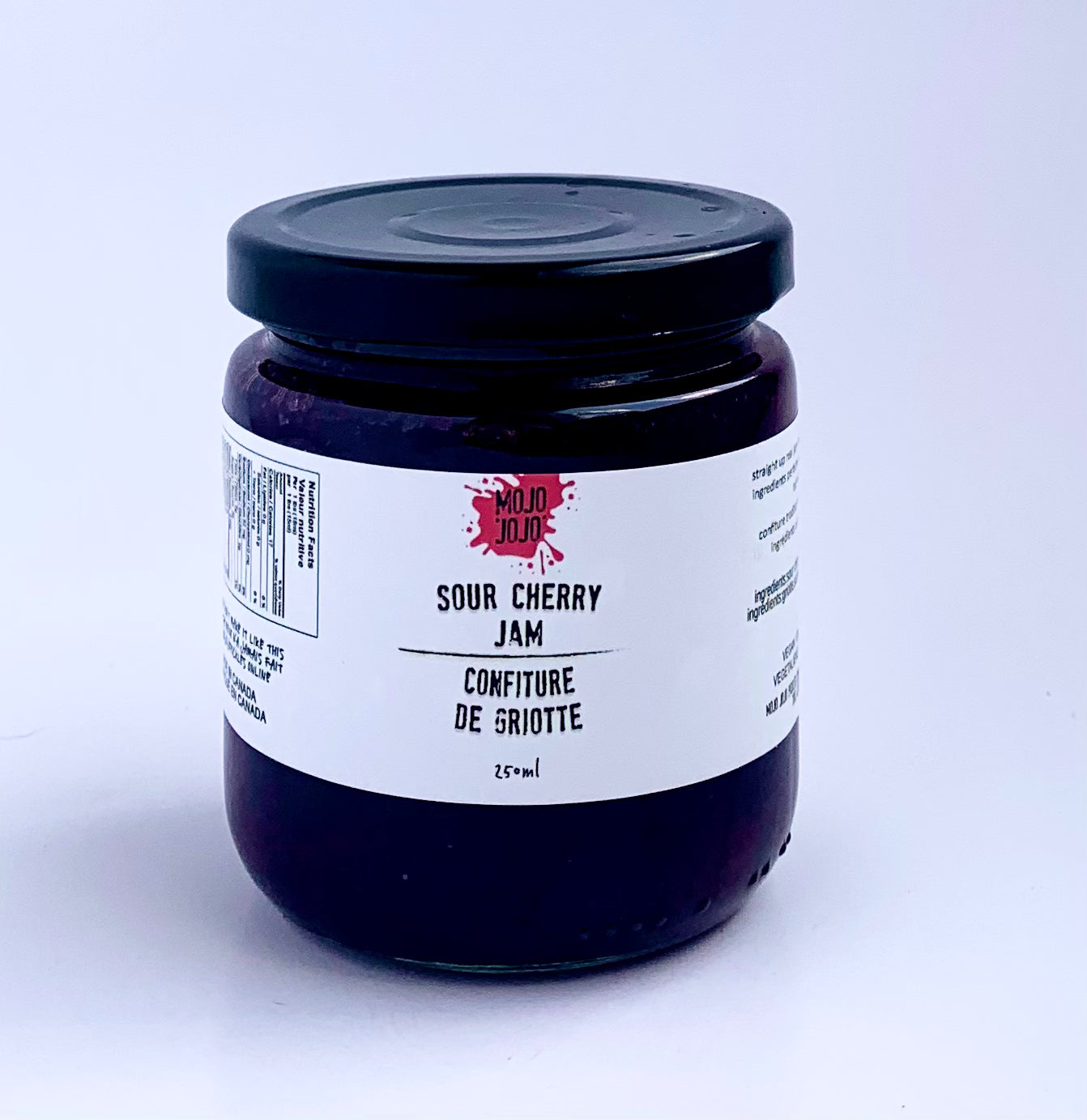 Canadian sour cherries candied carefully made with fruit vegan sugar and a little pectin. That’s it!